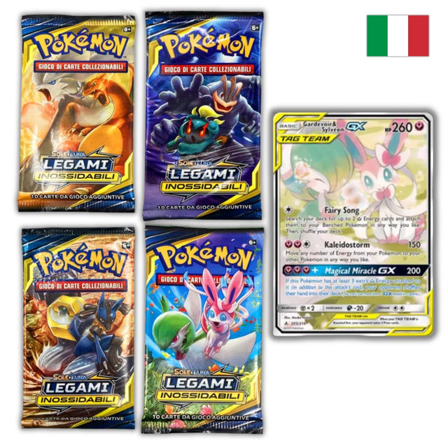 Pokémon Card Game | Sole e Luna Legami Inossidabili 4 Buste Set Artwork (IT)