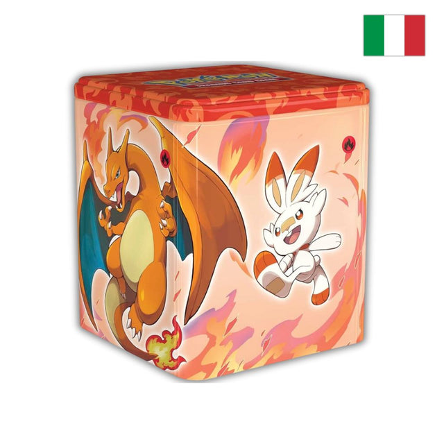 Pokémon Card Game | Stacking Tin da Collezione Tipo Fuoco: Charizard, Victini, Braixen e Scorbunny (IT)