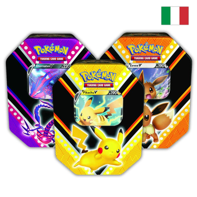 Pokémon Card Game | Tris Tin da Collezione Potere V: Pikachu-V, Eternatus-V e Eevee-V (IT)